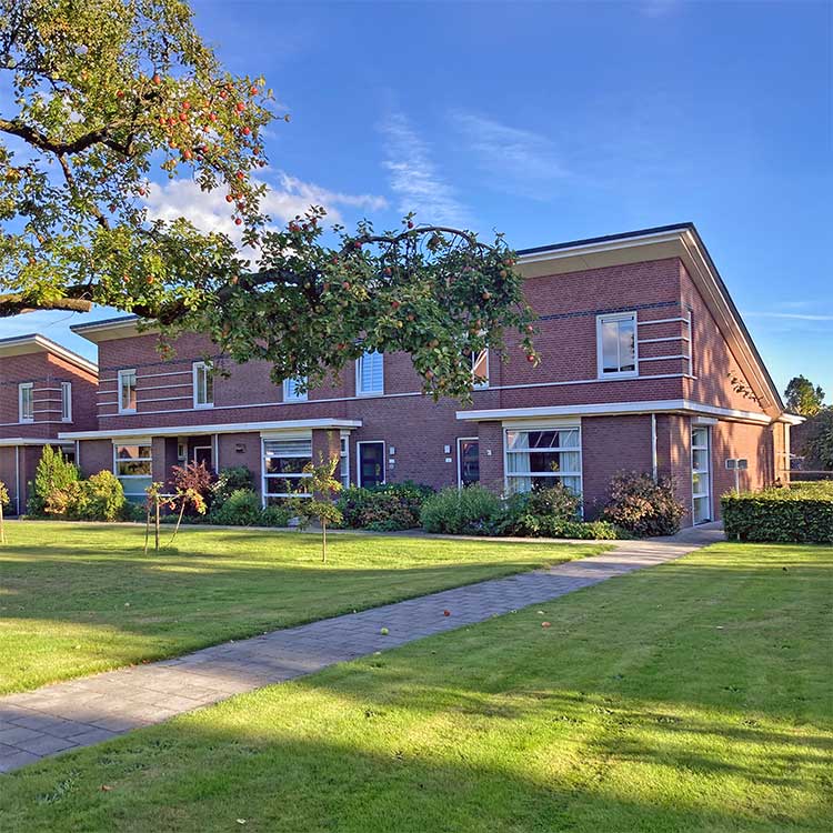 Elke woning is zorgvuldig ingebed in het gezamenlijke groene erf wat voorzien is met fruitbomen. Ook zijn er materialen gebruikt die aansluiten bij de streek, maar technisch volledig zijn voorbereid op de toekomst. Denk aan energieneutrale installaties, slimme indelingen en subtiele ontwerpdetails die de traditionele uitstraling net dat beetje extra geven.
